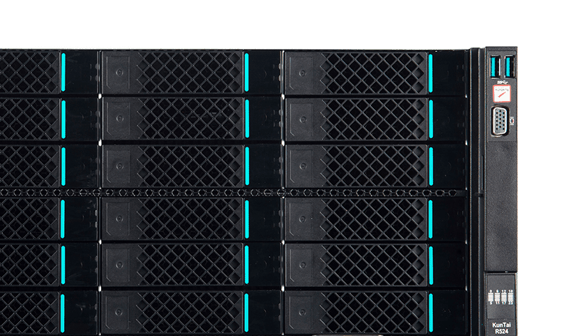 KunTai R524 存储型服务器是豪门国际数码基于鲲鹏处理器推出的新一代 ARM数据中心服务器。。。。主要面向存储业务,,,具有海量存储、、、高性能、、、低功耗以及易扩展的特点,,适合为大数据分析、、、、软件定义存 储等应用场景的工作负载进行髙效加速。。